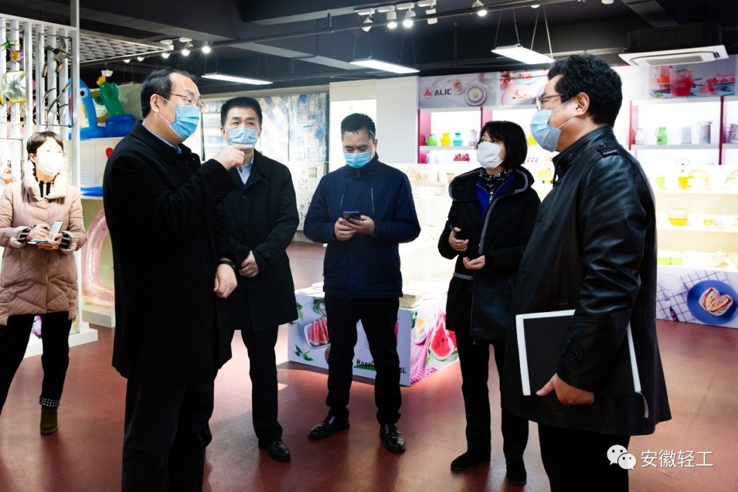 2月18日下午,安徽省副省長周喜安帶隊至安徽輕工公司調研指導新冠肺炎疫情防控和企業復工復產工作,省政府副秘書長孫東海、省商務廳副廳長劉光等隨同調研。