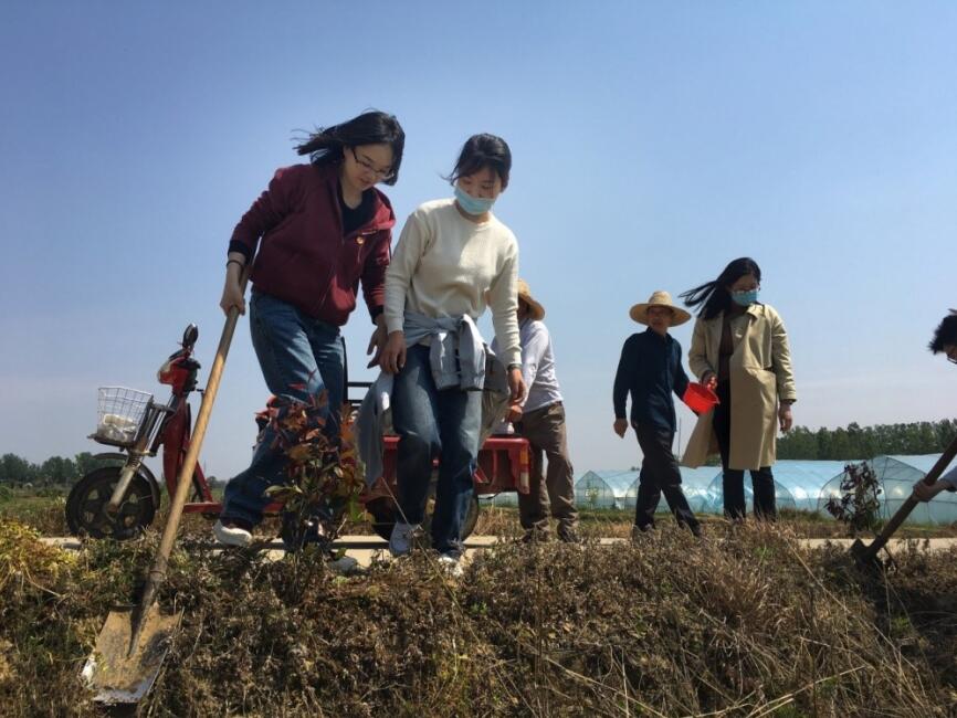 春風(fēng)拂面、艷陽當(dāng)空,團(tuán)員青年們紛紛扛起鐵鍬、拎起水桶、提起樹苗,沿著村子里的水泥路邊親手植下一顆顆紅葉石楠。有的揮鍬鏟土、挖坑栽樹,有的扶苗填土、踩實(shí)澆水,每道工序都一絲不茍,四處都是熱火朝天的勞動(dòng)場面。棵棵樹苗迎風(fēng)而立,承載著大家扮美鄉(xiāng)村的美好愿望,展現(xiàn)了國貿(mào)青年的青春風(fēng)貌。