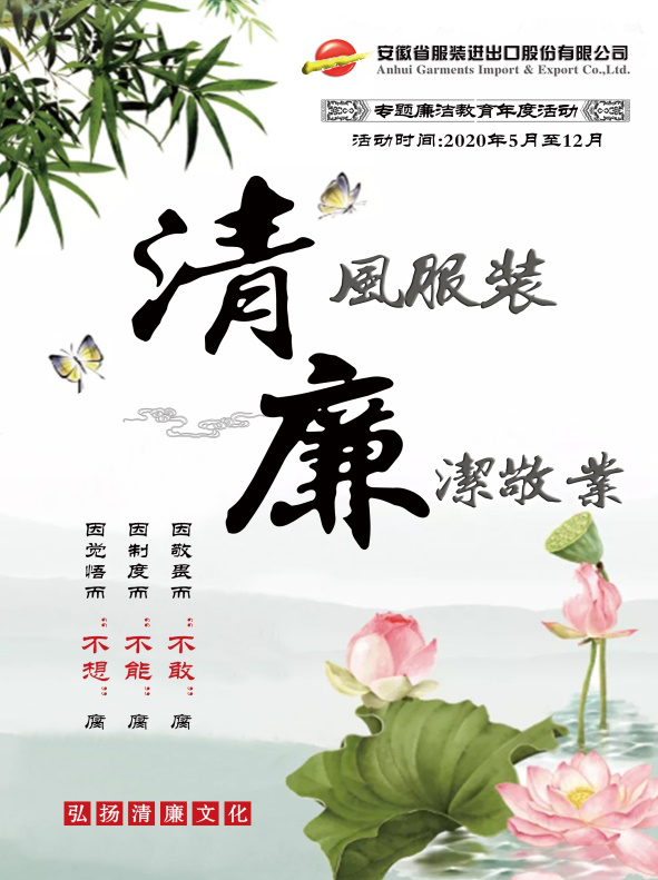 為貫徹落實海螺集團、國貿集團黨風廉政建設和反腐敗工作部署,推動廉潔文化建設、打造廉潔教育品牌,服裝公司近日啟動開展“清風服裝 廉潔敬業”專題廉潔教育年活動。
