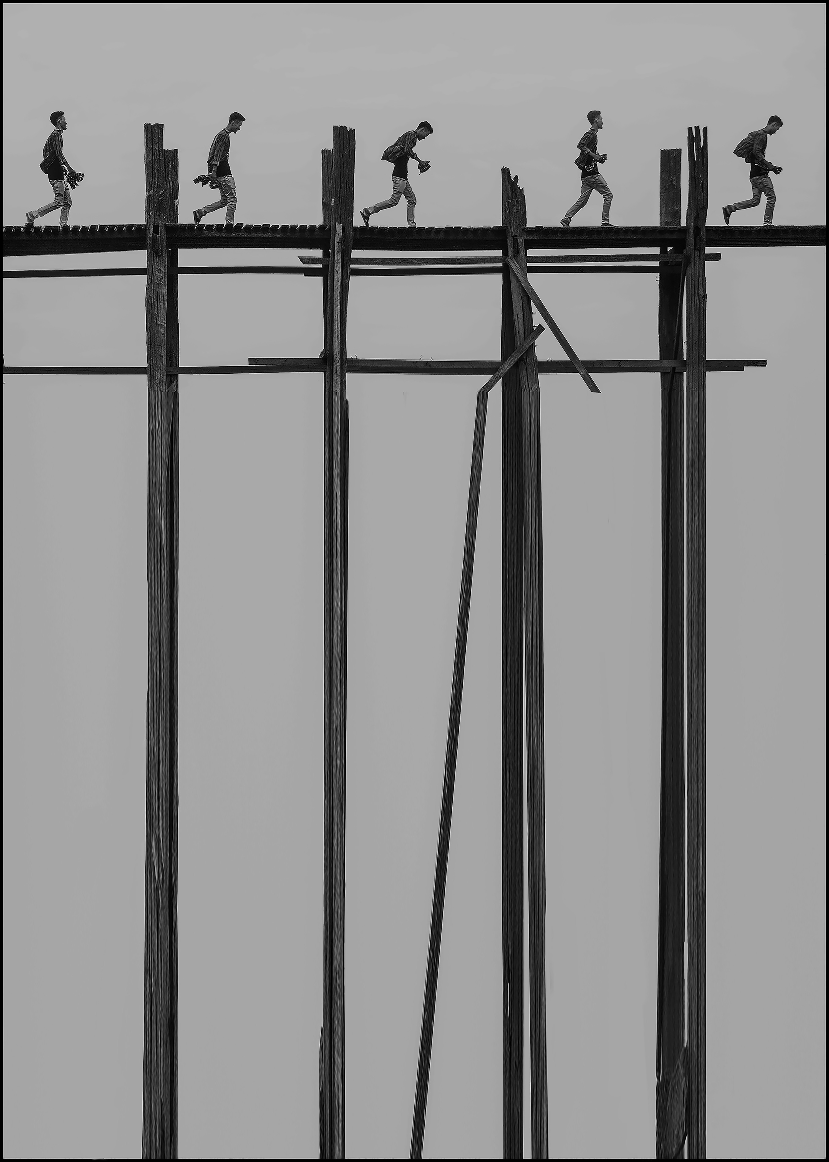 《空中少年》-技術公司-史亞利,2019年6月,攝于緬甸烏本橋。橋上自在行走的少年和水中長長的倒影,