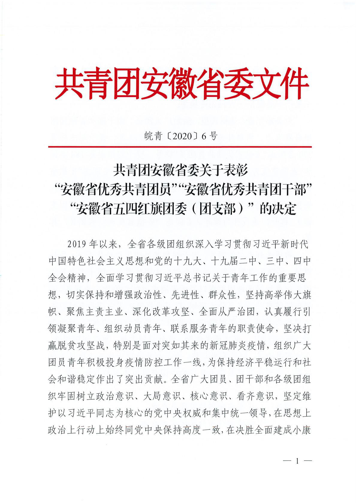 近日,共青團安徽省委下發有關表彰決定,國貿集團所屬安糧集團團委被授予“安徽省五四紅旗團委”榮譽稱號。