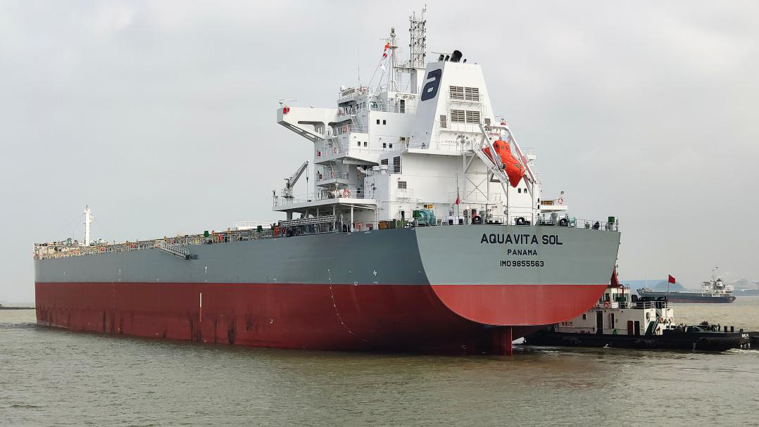 3月16日清晨,8.2萬載重噸“AQUAVITA SEA號”散貨船發出一聲長鳴,緩緩駛離岸邊,正式宣告該船交付工作的順利完成。