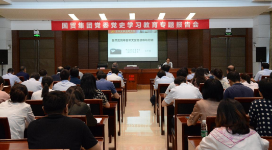 為慶祝中國共產黨成立100周年,進一步推動黨史學習教育走深走實,6月10日,國貿集團黨委舉辦黨史學習教育專題報告會,邀請省委講師團專家、省委黨校馬克思主義學院院長汪興福教授作專題授課。集團領導、各成員企業班子成員、各黨支部書記和部分黨員代表共約100人聆聽了報告會。